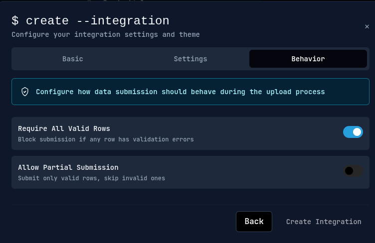- Allow Partial Submission — Submits only valid rows, skipping invalid ones.